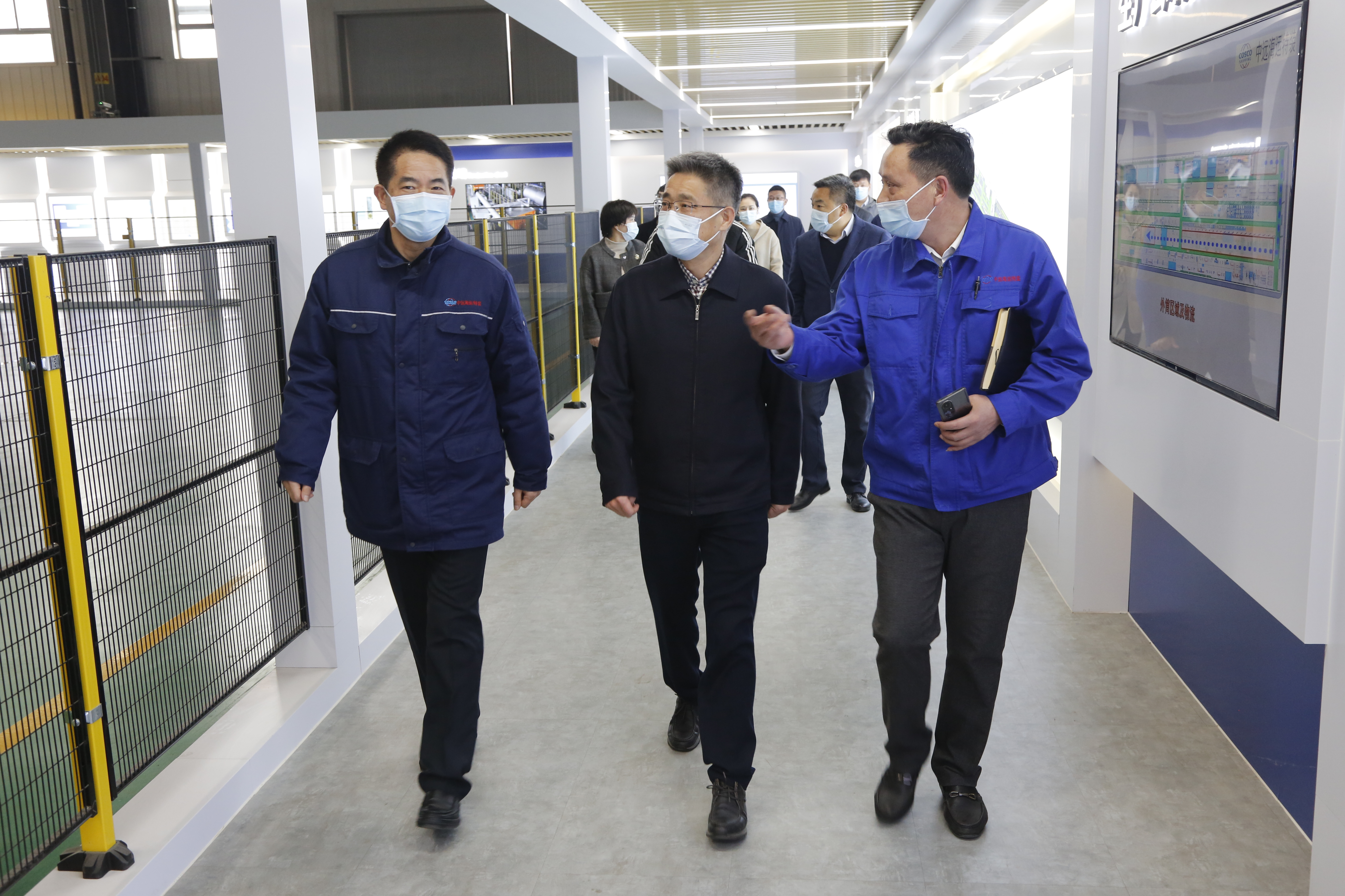 仲伟涛一行先后来到海宏智能科技公司厂房、工业物联网智造成套设备项目工地、LNG罐箱制造车间、板桥生产基地、连云新城承建项目工地、228服务区生产基地、石梁河生态修复及清水进城行动项目工地。每到一处,仲伟涛一行都详细了解各重点项目复工复产及项目推进情况,听取各单位工作情况汇报,检查各项目现场疫情防控和安全生产措施落实情况。