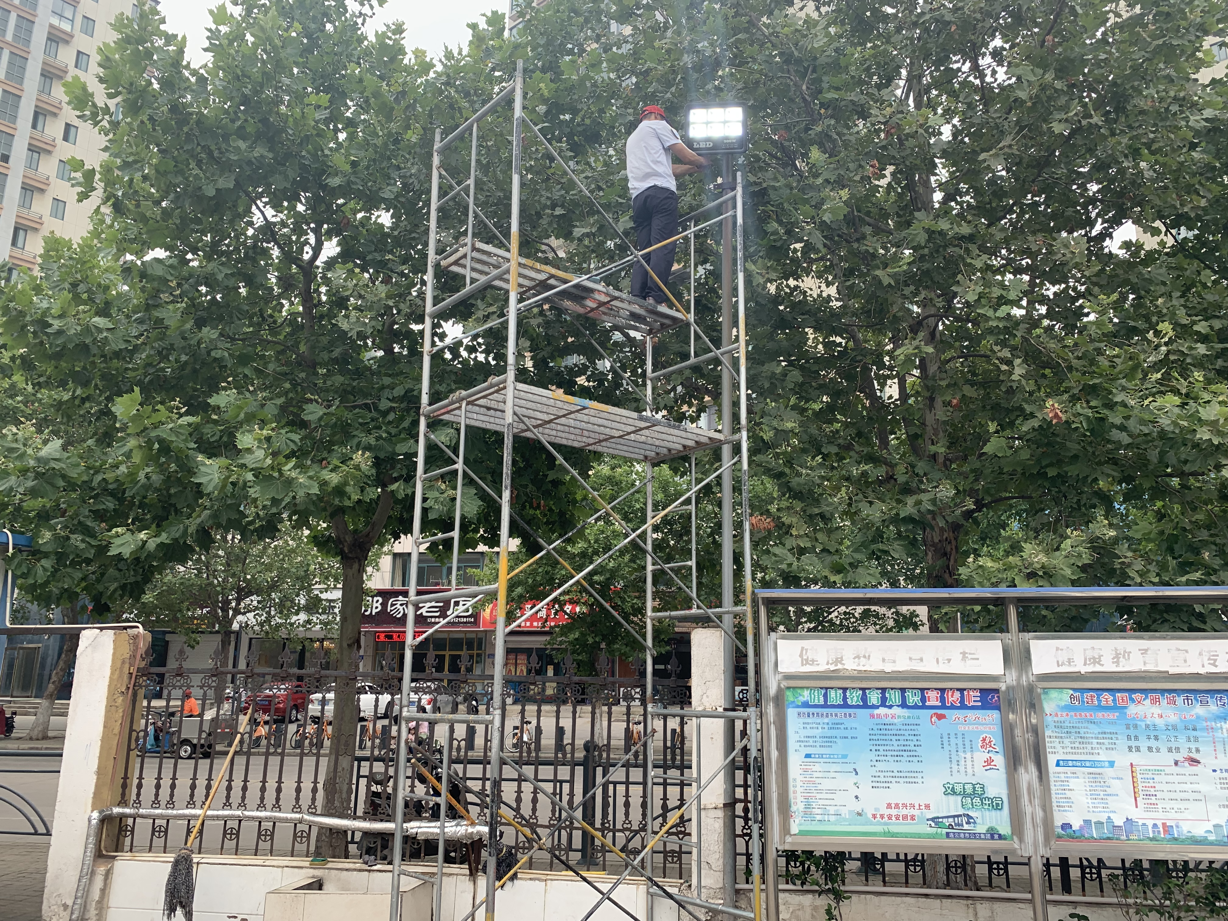一接到工作任务,王海龙就到灯具市场打听此类灯的价格,发现实体店价格较贵,为了节约成本,他又通过网上查询,经过多次比价,最终确定在网上购买了场站灯。由于场站灯安装过程繁琐,收到货品后,王海龙翻阅说明书,通过上网查资料学习安装方法,在试通电后,确保产品质量没有问题的情况下,他又到市场上租来了脚架,自己进行安装,同事们看到他站在约高达5米的空中安装场地灯,纷纷为他竖起了大拇指。