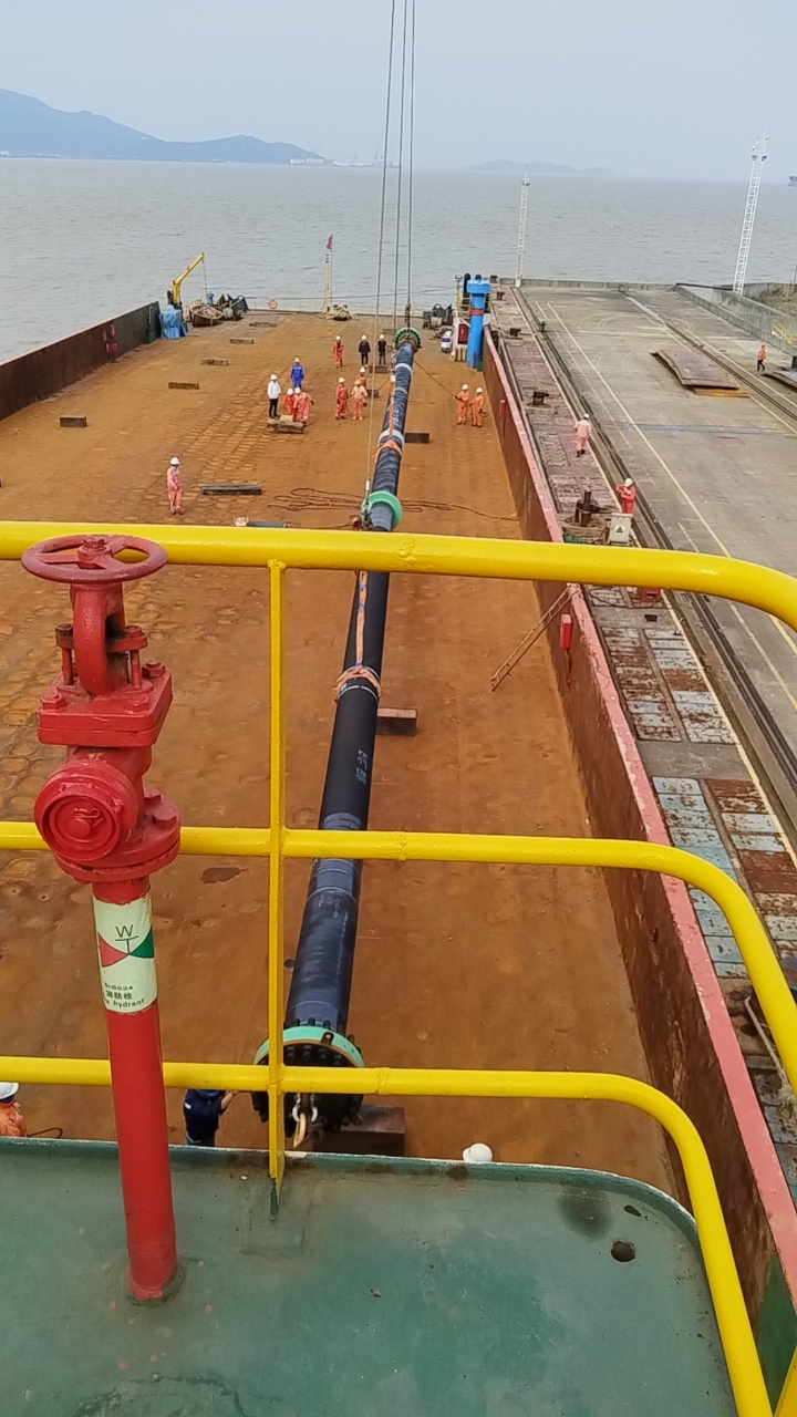 为做好运输工作,“忠发99”轮全体船员迅速响应,精心筹备,全力确保船舶以最佳状态投入运营。正月初一,“忠发99”轮在舟山长宏国际码头装载天然气管道后,启航驶向中海油海上中心平台施工区。春节期间,海上风浪较大,给船舶航行安全带来了一定挑战。然而,船员们凭借丰富的航海经验和精湛的专业技术,沉着冷静应对,严格遵循操作规程航行,切实保障了船舶的安全与稳定。同时,他们进一步加强对船舶设备的检查与维护,及时发现并排除潜在隐患,为运输任务的圆满完成打下了坚实基础。经过全体船员的共同努力,“忠发99”轮成功完成春节期间的运输任务,将天然气管道设备安全、及时地运抵指定安装作业地点,充分展现了船员们的敬业精神与高度责任感。
