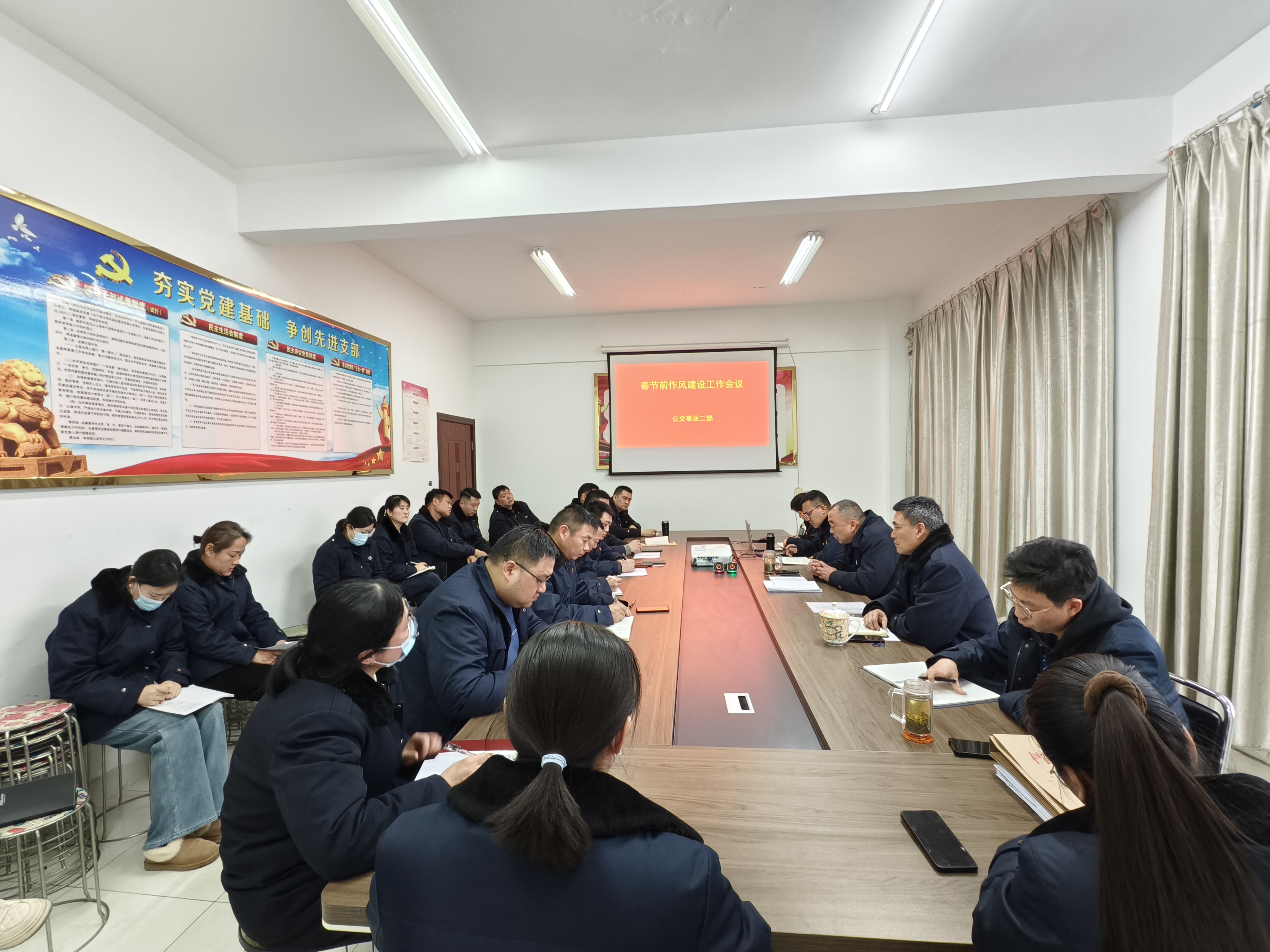 在春节即将来临之际,为增强干部职工廉洁自律意识,营造风清气正的节日氛围,1月23日,公交集团公交事业二部组织召开春节前作风建设专题会,会议由支部书记、经理庄刘柱主持,班子成员、三级干部、管理人员共计27人参加会议。