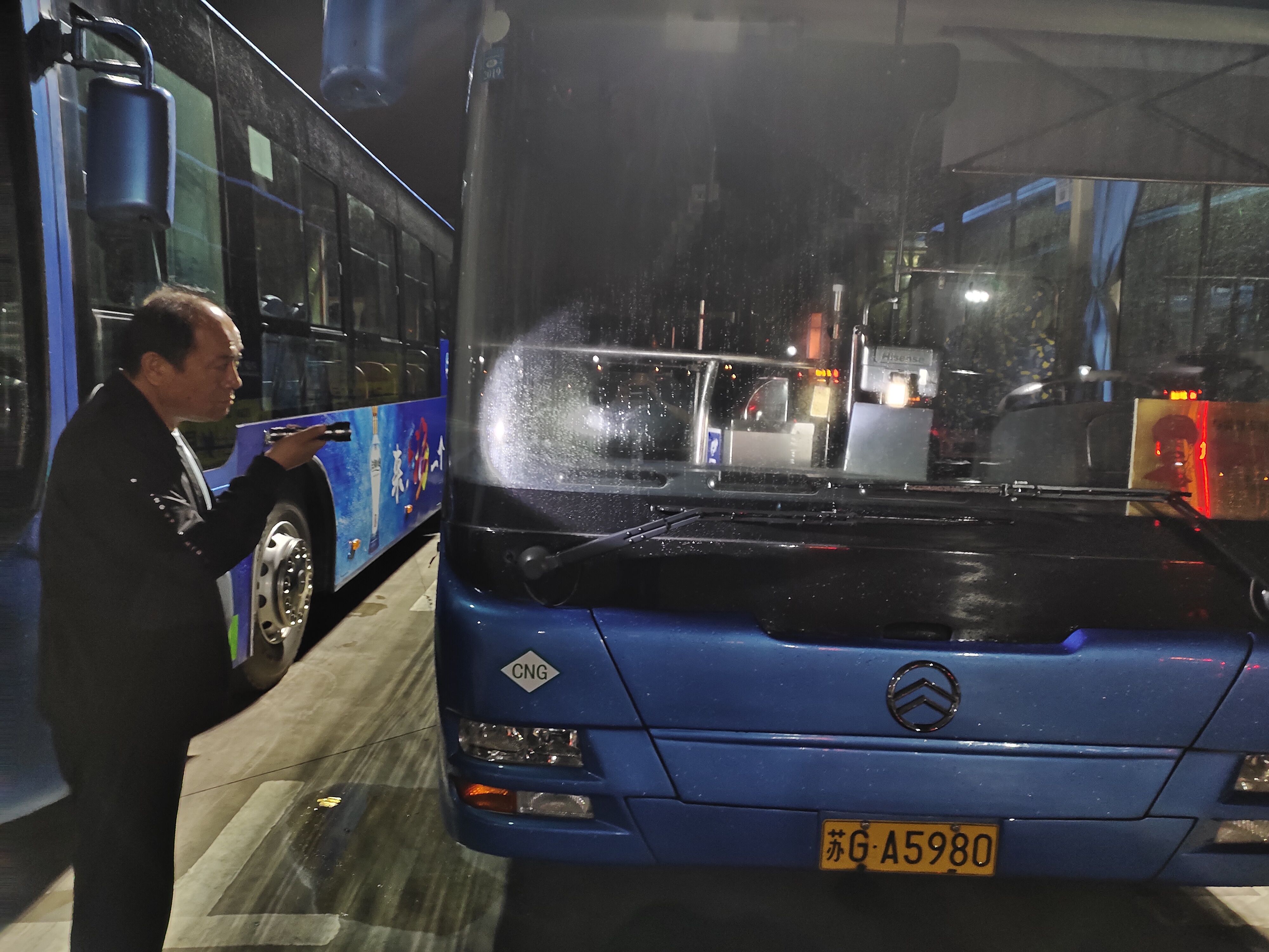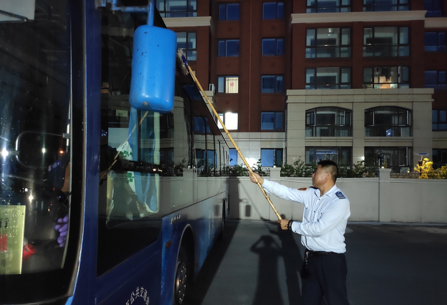 深夜,值班的公交人没有丝毫倦意,巡视场站,一辆辆检查停放在场站里的公交车是否关好电源、门窗,拔出钥匙,检查轮胎、发动机,用满身的汗水和满手的油渍,胳膊、腿上被蚊子“亲吻”过的痕迹总是让他们的严肃的脸上多了几分可爱,也是因为如此,才保障了新的一天每辆公交车正常运行。
