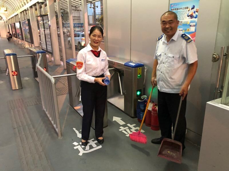 夫妻俩一个是驾驶员,一个是站务员,每天,姚伟开车都会路过董淑艳上班的站台,姚伟认真的把车停稳,董淑艳用温柔的声音播报:“乘客们你们好,开往在海一方的车辆B1进站,请大家带好随身物品,先下后上有序乘车。请下车的乘客,小心脚下安全,出站请走人行横道,不要闯红灯,谢谢大家。”其实,这是董淑艳在和姚伟的小暗号,她想表达的是:“亲爱的,行车途中一路平安!”
