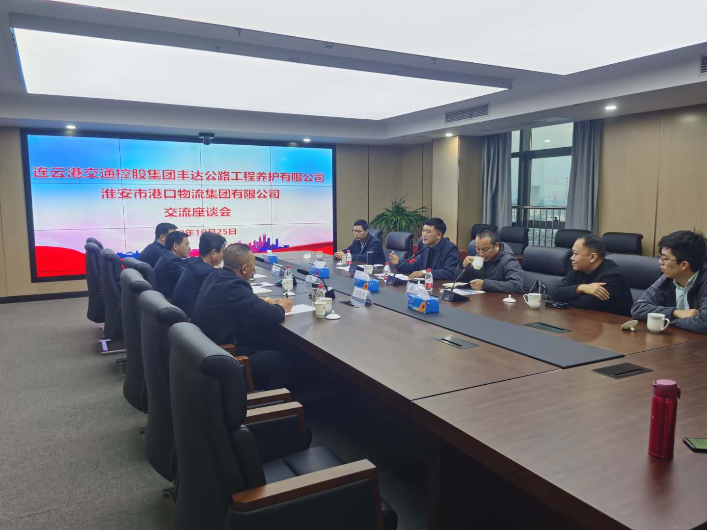 2020年10月25日至26日,丰达公路工程养护有限公司董事长戴衡等一行人员赴淮安考察调研黄沙市场情况。